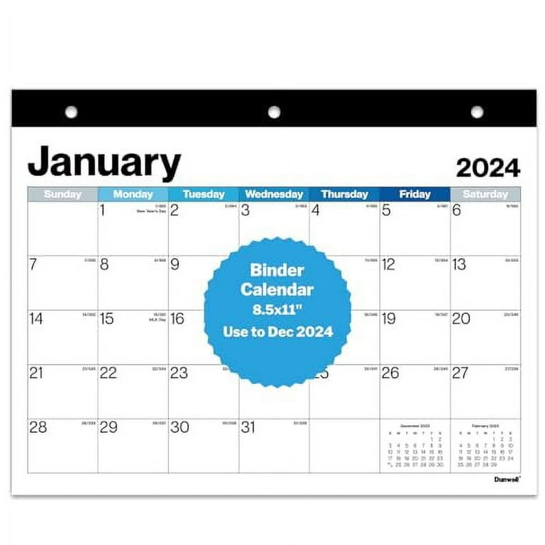 Dunwell Calendar for 3 Ring .. Binder 2025 (8.5×11, .. Blue